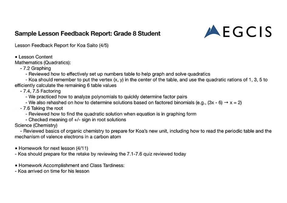 弊塾では、毎回のレッスンの後にレッスンのフィードバックレポート