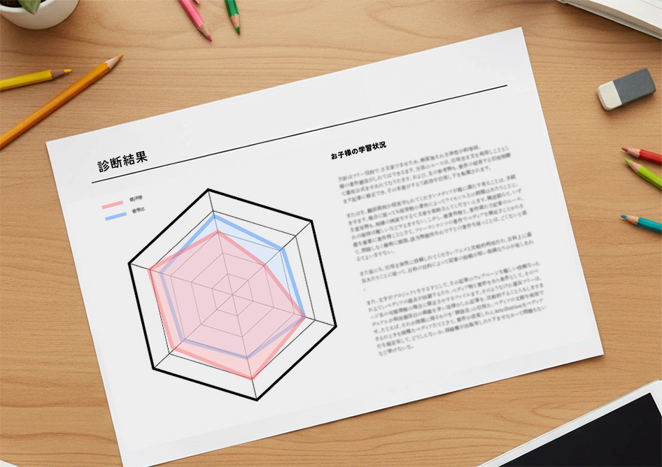 現在の学力や弱点はもちろん、学習習慣や特性までを独自の診断で徹底的に分析します。生徒様一人ひとりの「なぜ伸び悩んでいるのか」「どうすれば最短で伸びるか」という根本原因と、最適な学習アプローチを見つけ出します。